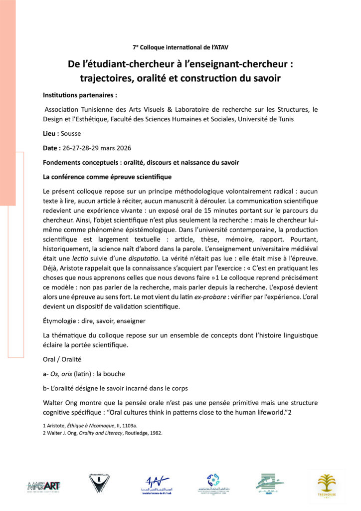 7ᵉ Colloque international « De l’étudiant-chercheur à l’enseignant-chercheur : trajectoires, oralité et construction du savoir »