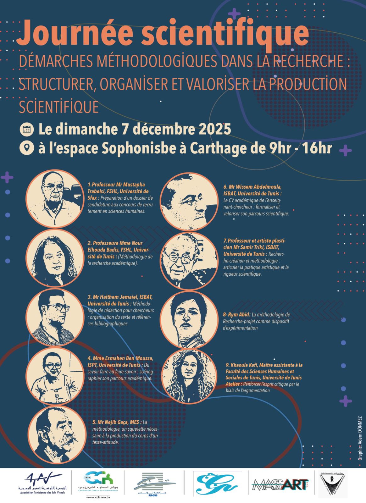 Journée d’étude du 7 décembre 2025 à Carthage, intitulée « Démarches méthodologiques dans la recherche : structurer, organiser et valoriser la production scientifique » Le principe de cette journée scientifique repose sur deux temps complémentaires : •Le matin : récolte de données, apports théoriques, analyses méthodologiques et échanges approfondis autour des démarches de recherche en …